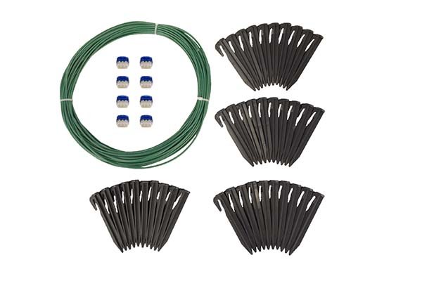 Avec un Kit de réparation de câble périphérique large pour John Deere, vous pouvez facilement réparer les ruptures du câble périphérique. Vous pouvez couper la partie cassée du câble à l'aide d'une pince. Coupez ensuite un nouveau morceau de fil de la même longueur. Placez ce nouveau morceau de fil à l'endroit où l'ancien a été enlevé. Vous pouvez utiliser les connecteurs de fils pour relier les fils entre eux. Lorsque vous insérez les fils dans le bloc et que vous cliquez sur le bloc, celui-ci est scellé de manière étanche. Le fil est maintenant libre sur la pelouse. Veillez à le rattacher tous les cinquante centimètres à l'aide d'un piquet de fil. Si la rupture se situe au niveau d'un coude, vous aurez peut-être besoin de plus de piquets.