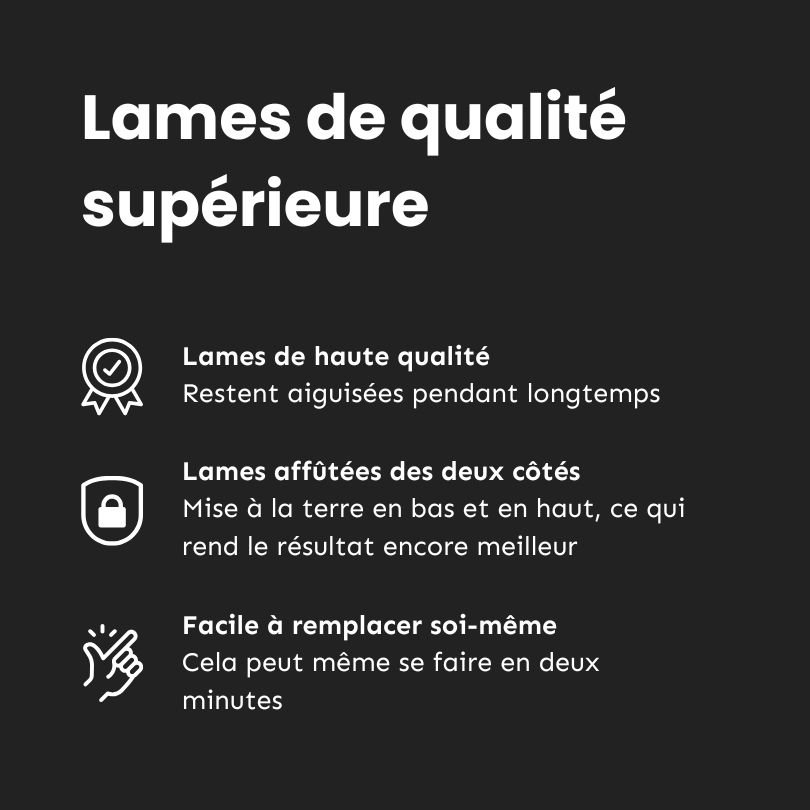 La lame de robot tondeuse pour WOLF-Garten Loopo série S - 1 lame est idéale pour remplacer l'ancienne lame de la tondeuse. Les lames sont très résistantes et durent donc longtemps. En moyenne, vous ne devez remplacer une lame qu'une fois par an. Cela dépend toutefois de l'utilisation et de l'état de la pelouse. S'il y a beaucoup de brindilles, de pierres ou d'autres obstacles sur la pelouse, la lame risque d'être endommagée ou de se casser pendant la tonte. Il est donc important de veiller à ce que la pelouse soit exempte de tels obstacles. La lame est endommagée ? Remplacez-la immédiatement. En outre, une lame émoussée ou endommagée peut abîmer et casser l'herbe.