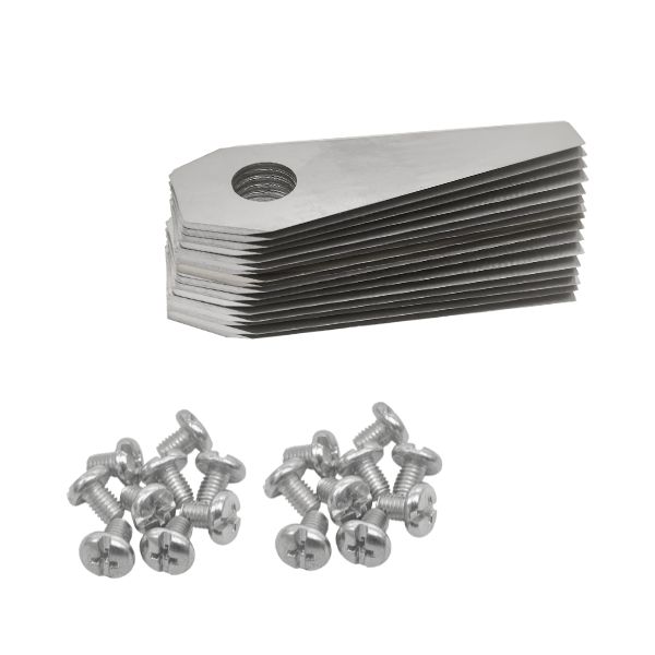 Les lames de robot tondeuse pour Bosch - Set de 30 sont les remplaçantes idéales de vos lames de robot tondeuse usées. Ils sont fabriquées en acier massif de 0,6 mm, ce qui les rend très résistantes. Les lames sont affûtées des deux côtés. En haut et en bas. Ces lames sont donc extrêmement tranchantes, ce qui vous permet de profiter d'une pelouse parfaitement tondue. Toutefois, les lames doivent être remplacées de temps en temps. En effet, les lames de robot tondeuse s'usent avec le temps en raison de l'utilisation. Il est donc judicieux de vérifier régulièrement le robot tondeuse. Les lames sont-elles émoussées ou usées ? Si c'est le cas, remplacez les lames et les vis en une seule fois. Les nouvelles lames sont livrées avec de nouvelles vis.